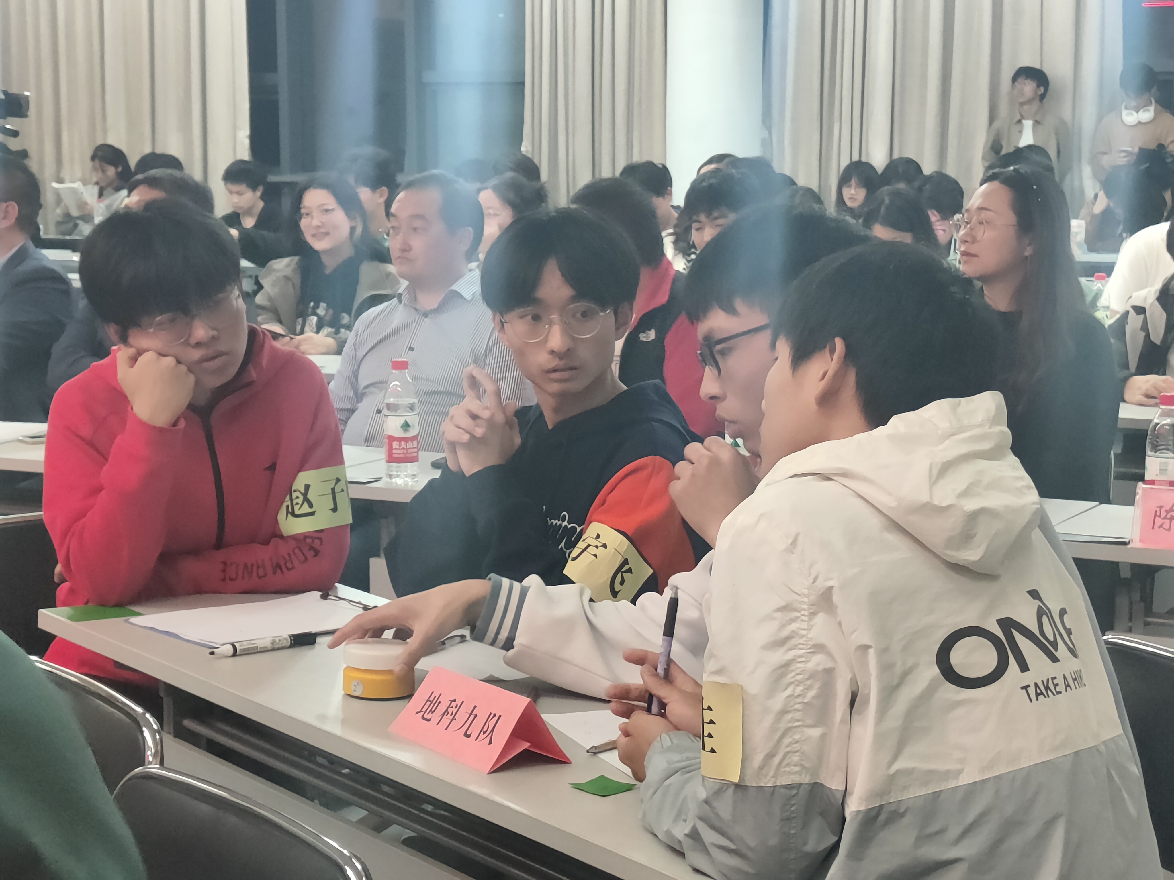 最后的现场指定答题环节,评委老师在地学知识中融入当下时事热点,以及身边常见自然地理现象,既考察同学们对专业知识与专业前沿的了解,更引导同学们关心时事,培养大家心系能源事业的情怀。老师们现场提出了“你是否了解专业的热点方向,与985、211高校同专业员工相比较,我们要如何保持竞争力”和“说出五个著名的地质学家”等问题。同学们认真思考,积极讨论,充分调动所学知识,队伍成员们配合作答。几轮精彩的回答过后,评委老师根据四支参赛队伍回答的整体表现进行了评分,评选出此次比赛的冠军。