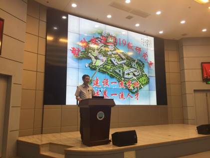 下午15时,开学典礼在庄严的国歌声中拉开帷幕。何幼斌经理首先代表学院对2019级研究生的到来表示热烈欢迎,然后分别从地科院悠久的办学历史,丰硕的研究成果,广阔的科研领域等三个方面为新生进行了讲解,并对全体研究生提出5点希望:1.要对自己高标准严要求;2.要全面明确自己的研学目标;3.要踏实勤奋、孜孜以求、锲而不舍地迎难而上;4.严谨为学、诚信为人;5.要学会做人,为学先为人。